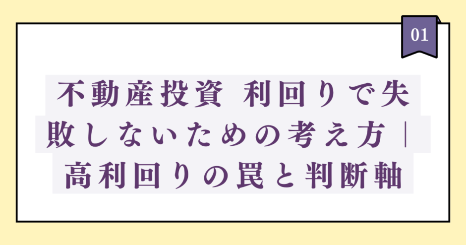 利回りは単独の数字ではなく、立地と収入・出口戦略の条件を合わせて基準にすると、判断がブレにくくなります。