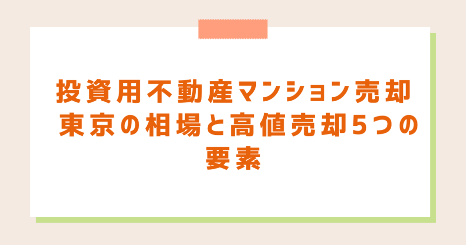 東京での投資用マンション売却は、単に「高く売る」だけでなく、タイミング・税金・収益性・市場動向など、多くの要素を総合的に判断する必要があります。